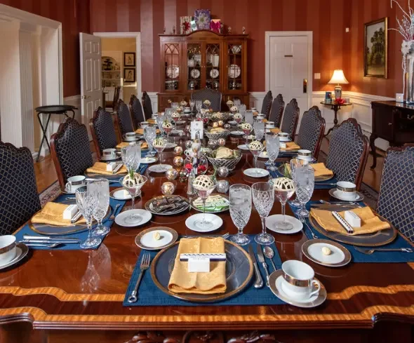 Groups of fewer than 10 people that do not use the official caterer are responsible for disposing of all trash, wiping down tables and countertops and restoring the house to its pre-event condition.